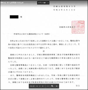 当方から宮崎県警察警務部監察課に対し、質問状を送付。